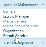 Navigate to the Permit Service screen by clicking the My Admin link then choosing Permit Service from the Account Maintenance pane.