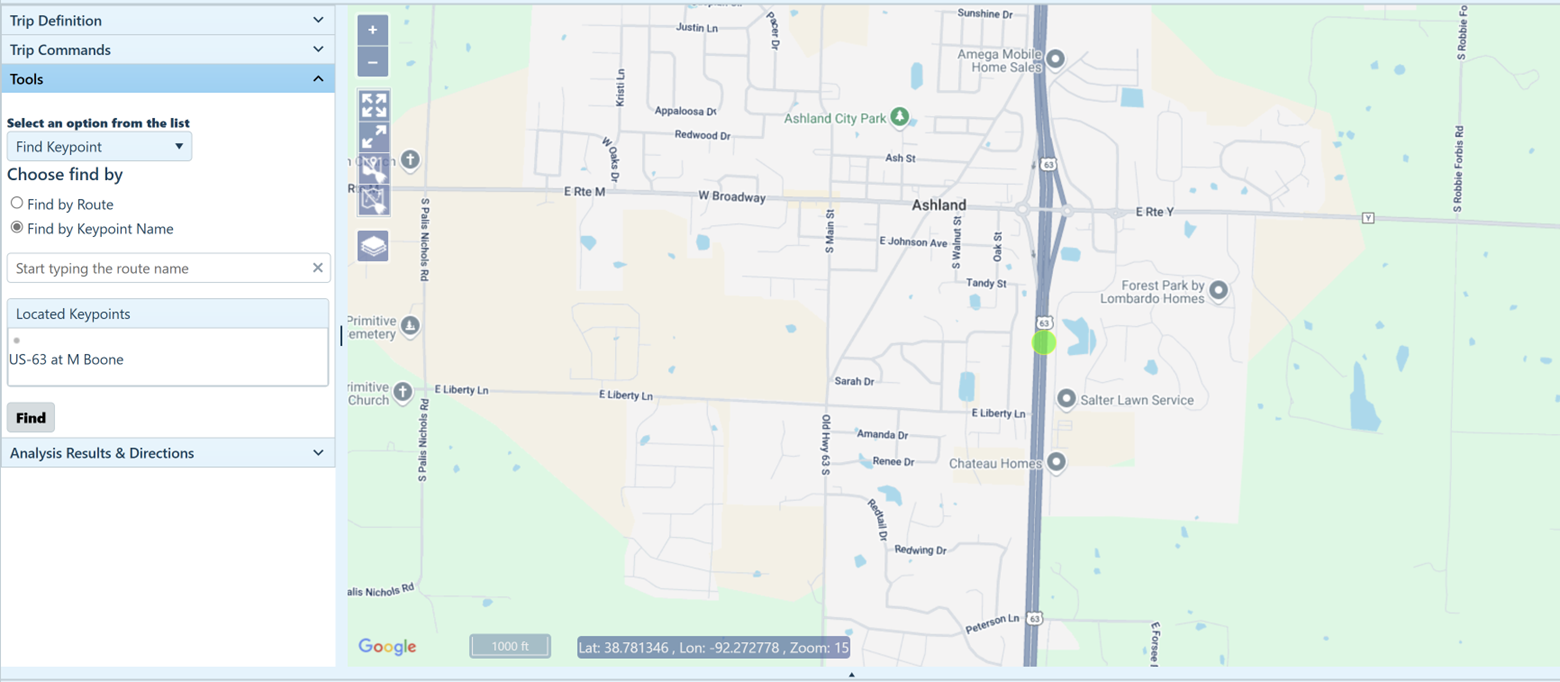 With an application open to the Trip page, access the Tools pane then choose Find Keypoint from the drop-down.